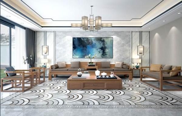 灰白相间的丰富图案而极富装饰性,给人以一种无垠的包容感,如涓涓流水般烟波浩淼,又似细薄轻纱般细腻柔和,纹理如清波荡漾,又如风起云涌,演绎丰富多彩的生活。