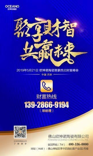 5月21日,“聚享财智 共赢未来”欧神诺财富峰会将于中国·西安隆重召开。加盟欧神诺陶瓷,投资50万做千万生意!终端推广力,差异化发展,为您开启商赢模式!马上拨打招商财富热线,携手欧神诺,掌控商机、共创辉煌!