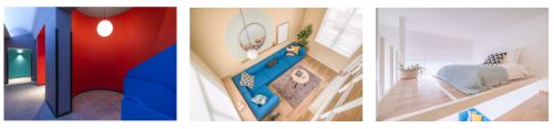 在客房的房型设计上,TULU采用了复式(LOFT)和平层(STUDIO)两种形式,满足不同的居住需求。LOFT房型中每间都做出了5米的挑高,将整个空间分割为上下两层,一层用作开放式客厅与独立卫浴;二层设置了卧室作为私密的区域,保证了室内各处通透明亮。平层(STUDIO)房型除了常规的卧室、独立卫浴及会客区以外,设计师们还在入口处添置了一张长台,住客们可以尽情在这里用餐、阅读或是办公。在房型选择上也十分人性化,除了常规的大床房外,还额外添置了双床和三床房,满足多样的住房需求。