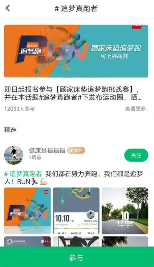 除了即将在全国百城开展的线下追梦跑活动外,顾家床垫追梦跑线上挑战赛也在同步进行中。
