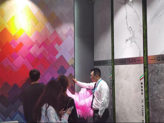 大胆的色彩处理、突破传统的瓷砖运用、现代时尚的空间氛围,将“轻松、时尚、自由、个性、简约、灵动、舒适”等时尚生活美学元素发挥得淋漓尽致,传达出积极的轻时尚生活态度。QD瓷砖本次全新“轻时尚”风格,亮相两大展会,成功吸引来自各地客商及广大媒体采访关注!