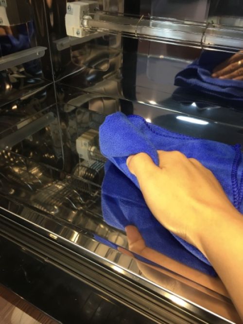 立式消毒柜在使用一段时间后,由于很大部分用户在放置餐具前没有正确沥干或擦干餐具内残留的余水,导致餐具内的余水流到消毒柜内,时间久而久之就会形成水渍印记,所以要定期对消毒柜进行清洁保养。在清洁立式消毒柜时,先拔下电源插头,用干净的湿布擦拭消毒柜内的外表面,禁止用水冲洗消毒柜。如果消毒柜里面某个地方实在是太脏,先把层架取出,轻拿轻放避免刮花箱体,用湿布蘸中性洗涤剂擦洗,再用干净的湿布擦净洗涤剂的泡沫,最后用干布擦干。特别注意,清洗时不要撞击加热管或臭氧发生器。