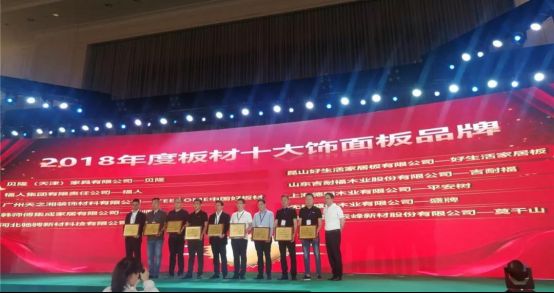 作为板材行业的知名品牌、定制家居领域的后起之秀,升华云峰副总经理沈云芳、莫干山营销公司总经理助理叶斌代表莫干山品牌应邀出席此次峰会。会上,莫干山品牌凭借优质的产品质量和服务体系,斩获“2018年度十大生态板品牌”“2018年度十大饰面板品牌”“2018年度板材优秀制造企业”三大荣誉!