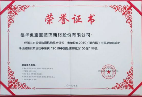此次入选品牌影响力百强榜是对兔宝宝品牌建设的极大肯定,作为深耕家居建材行业二十余年的企业,兔宝宝在品牌建设方面已是硕果累累。