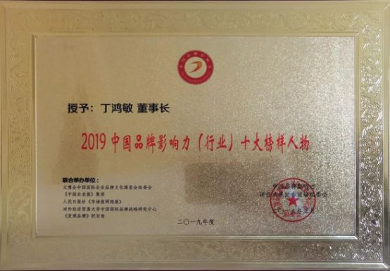 △丁鸿敏董事长荣膺“2019中国品牌影响力(行业)十大榜样人物”称号