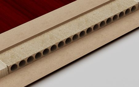 运用空心砖的原理,内部小孔形成空气柱,达到隔音效果。