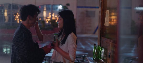 来到女友身边,亲手送上捂在包里的热水和伞。