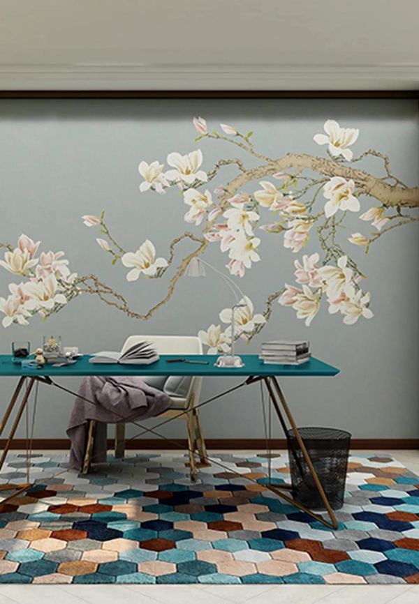 江南春日,草长莺飞,雅诗澜将这样一番美景融入室内,采用美妙的花鸟壁布,与此呼应的是室内的插花装饰和桌上的枝型台灯,都呼应了这一主题,整个房间鲜花盛开,美丽且优雅。