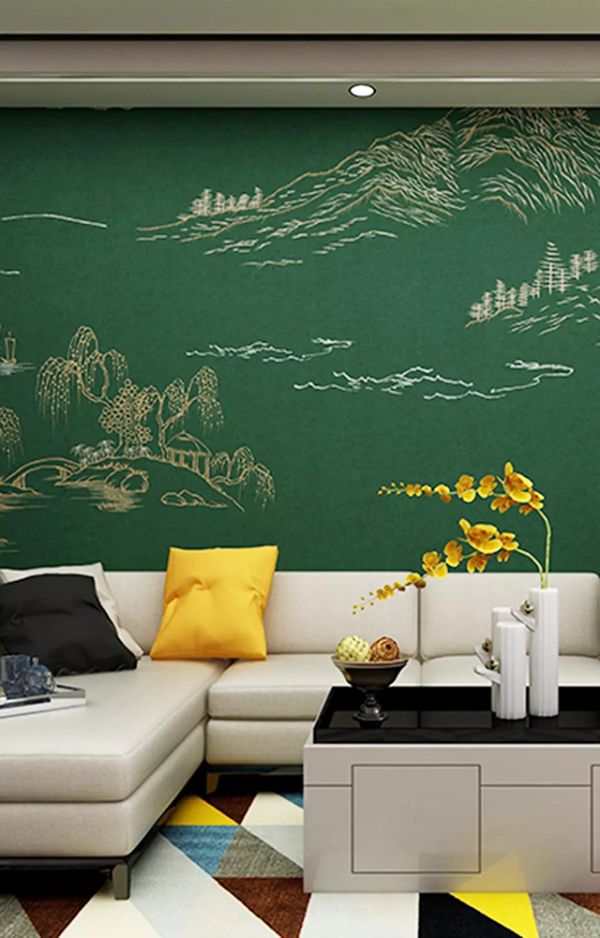 这套方案的可取之处,首先在于它使用了简单的黑白灰的装饰和草绿色的雅诗澜墙布,充满江南水乡的宁静、素雅和自然。另外在空间设计中,使用了大片玻璃窗,让室内和室外空间看上去更像一个整体,人存在于自然中,回归到自然中。