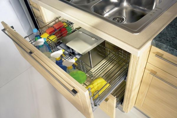 拉篮是用来收纳厨房餐具的,拉篮种类可以分:三面拉篮、抽屉拉篮、高深拉篮、转角拉篮等。