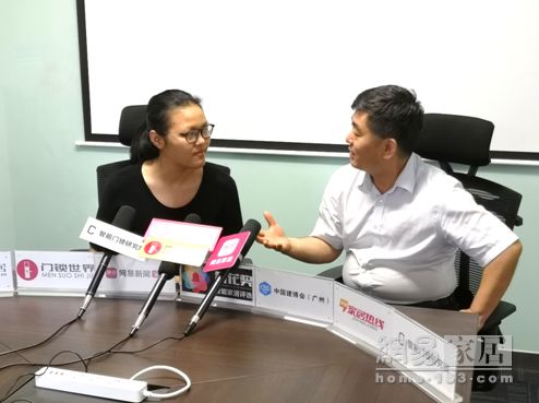 走访现场,涂鸦智能运营副总裁黄秋萍接受了2019中国建博会葵花奖评选组委会秘书长、中国智能家居创新发展与技术标准产业联盟执行理事长陈军的采访。