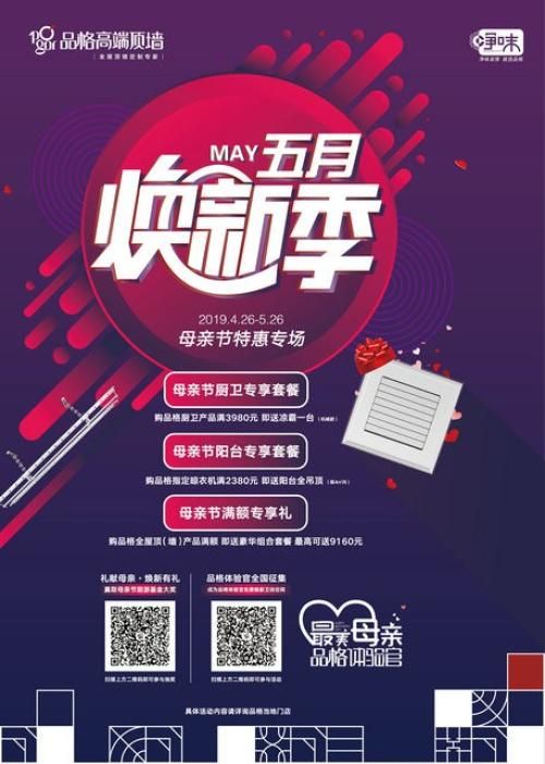 爱她,不是说说而已,品格家居,致敬每一个家庭中的女主人,让你把爱带回家。烈日炎炎,还有品格母亲节特惠专场冰点价来袭!除了小区焕新特惠,“最美妈妈 ——品格产品体验官”全国征集活动,还有厨卫专享套餐、阳台专享套餐、满额礼专享套餐三大超值套餐席卷而来,引爆夏日狂欢,给“她”最需要的关爱,让时光走得慢一点,再慢一点。活动截止至5月26日,还没行动的朋友快抓紧吧!