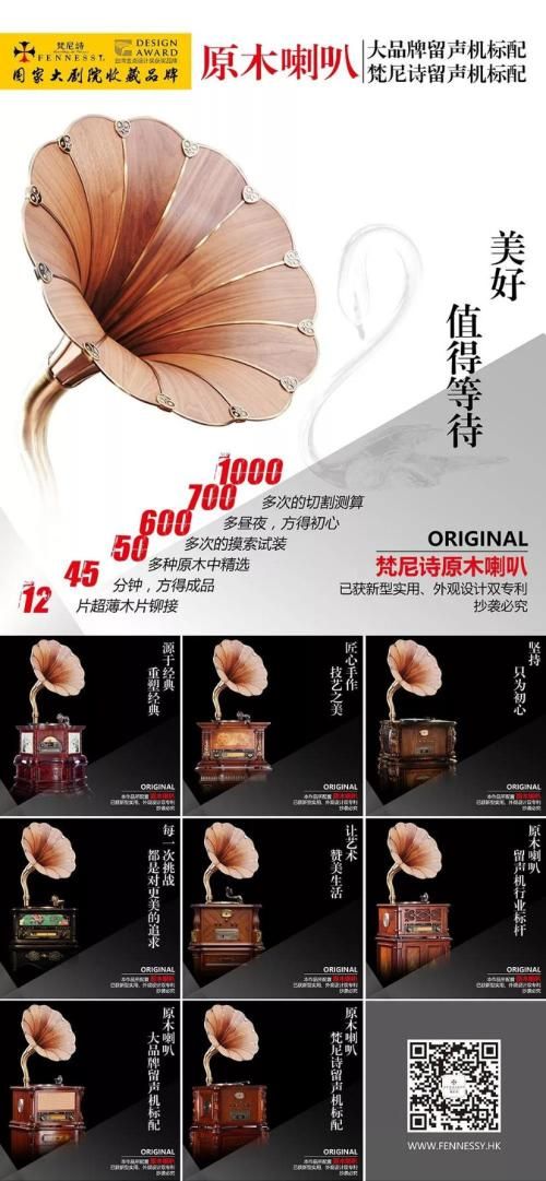 理由四:梵尼诗将就极致的工艺。梵尼诗用14年的专注,成就了留声机行业的王者地位,能够在时代潮流的激荡中从容前进,与梵尼诗对工艺的潜心研究无法分离。梵尼诗独家专利的原木喇叭,需要经过12片超薄木片拼接,50多种原木精选,600多次的摸索试装,1000多次的切割测算,方得这新型实用、外观设计双专利的艺术级的作品。梵尼诗将心注入每件作品,承载家族情感的传承,成为精神贵族生活方式的艺术符号!