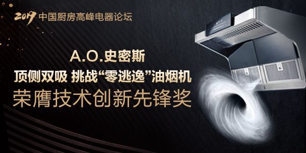 5月22日,2019年中国厨房电器高峰论坛在北京举行,A.O.史密斯顶侧双吸挑战“零逃逸”油烟机凭借出色的产品设计与性能,揽获“就‘享’不一样”发布会中“技术创新先锋”大奖。