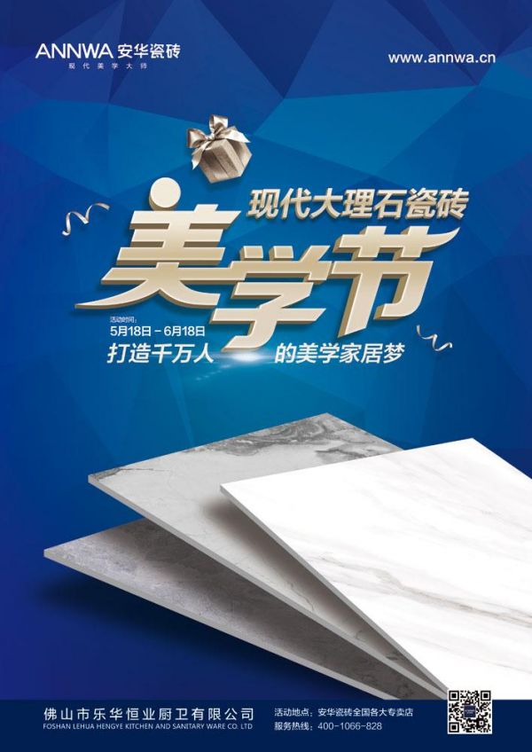 为了更好的普及和落实美学生活,让更多的消费者用上高品质的现代大理石瓷砖,5月安华现代大理石瓷砖美学节全面启动,以消费者对美学生活的需求为导向,线上联合新浪家居知名媒体共同发起“美学空间大赛”活动,同时,线下在全国终端门店同步美学节大型活动,主要围绕“玩好、逛好、礼好”等三部曲开展,在全国门店征集美学品鉴官,让消费者对于美学生活有新的切身感受体验,展现安华品牌的独特魅力,安华瓷砖品牌定位为“现代美学大师”,将现代美学与生活相融合,带给消费者极致的生活美学体验。