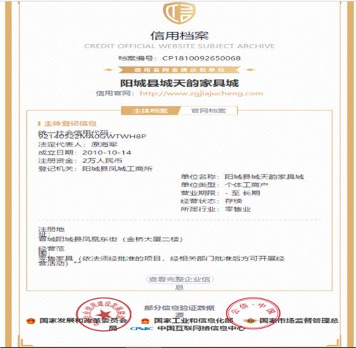 与此同时,中国家具城平台已获公信中国权威认证,公信中国是一个国家域名创新应用平台,为企业和网民提供权威的企业公共信息和企业官网查询入口。入驻公信中国,意味着为消费者提供放心优质的服务,各大企业放心入驻,现在入驻半年可送一个月会员,欢迎全国家具原材料、家具装饰相关商家入驻加盟,期待您的到来 联系电话15828057785