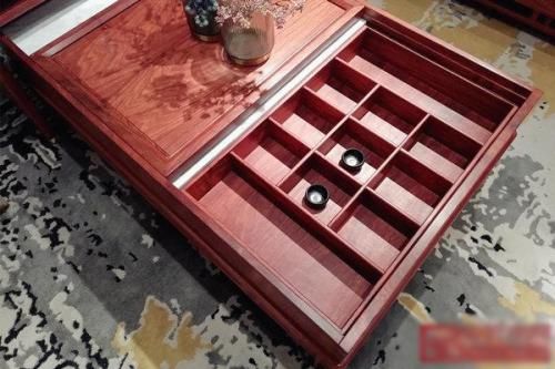 “尚贤”客厅系列正是这样一款为平凡生活增添乐趣的美妙家具。波兰爵士白的大理石,细腻地镶嵌在刺猬紫檀橙褐色的木纹肌理之中,既有素雅与浓烈的对比,亦是高雅冷色与温馨暖意的融汇中和。可推拉的盖板设计,巧妙地隐藏了储物空间,更多地考虑到了家居实用理念——清洁易打理,而这被遮盖起来的空间,更是储存礼物的绝佳场所,为爱人准备的纪念日礼物,为孩子准备的节日惊喜,都会在这面改版的推拉中,萌生中无尽的惊喜与期待。