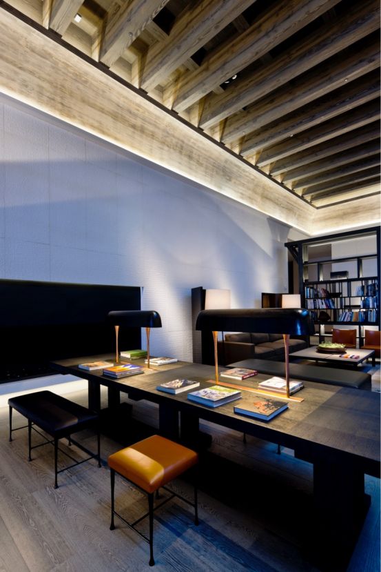 在软装方面,俱乐部也保持着统一的低调奢华风格。每一处洽谈区在开放设计的同时也保证了相对的独立性,各色的高档进口皮质休息沙发和休息椅质感十足。这里还有一个十分贴心的设计,整个大厅各处分布着多个书柜,各式各样的书籍陈列在册,休息区的每一张桌子上都至少放置一本书,以供客人阅读。