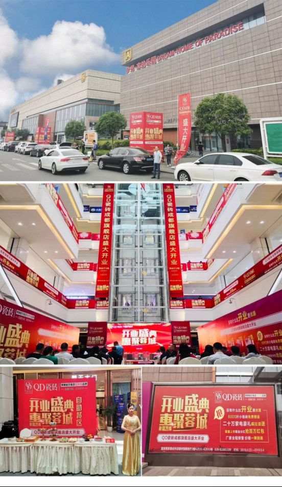 艳阳高照,惠聚蓉城,QD瓷砖成都北富森旗舰店于5月2日迎来盛大开业。建材馆内外满眼皆是QD瓷砖的宣传广告,霸气户外广告覆盖商场门口、主道,强大的品牌气势让QD瓷砖成为成都北富森家居4、5月人气最红的展厅,