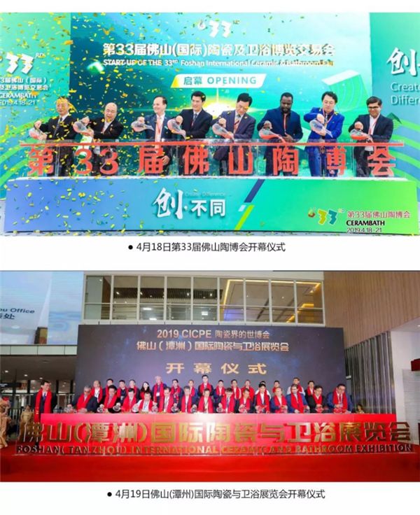 4月18、19日,一年中的建陶行业盛会“ 第33届陶博会“及“ 2019中陶产品展CICPE ”在分别在中国陶都-佛山正式开幕。各大展馆,汇集了上百家实力陶企,演绎一场科技、概念、设计、空间的行业趋势展。