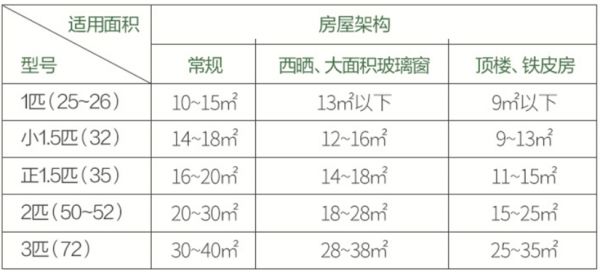 匹数大小是大家买空调遇到的第一个问题。空调匹数其实是指制冷量的大小,匹数越大空调制冷能力就越强,所能适用房间面积也就越大。为了避免出现“小马拉大车”的情况,空调匹数尽量要和房间面积相匹配。一般而言,1.5匹空调适用于18㎡左右的房间;3匹空调则更适合35㎡左右的房间。有关空调匹数和房间面积的关系可以参照下面的表格。