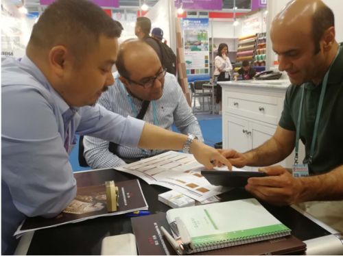 本次集团公司展出的产品包括木雕建材以及成品家具,符合当今家居、建材设计的潮流趋势,以简洁新颖的设计、精美的制作工艺、优越的功能性,获得了来自北美、欧洲以及中东地区客商的青睐。在近几年欧美市场消费持续萎缩的严峻形势下,在中美贸易战愈演愈烈的不利环境下,前来联合美饰广交会展位参观与洽谈的客商仍然络绎不绝,联合美饰木雕建材、浴室柜等产品仍然能获得足量的外销订单,仍然能在北美、欧洲的大型建材市场获得良好的口碑,这是非常不容易的。