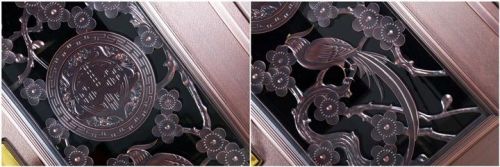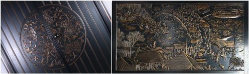 名门馆内,最吸引眼球的,莫过于门面上栩栩如生的精雕元素。“清明上河图”、“兰亭序”、“喜上眉梢”……熔铸到每一樘门上,每款都做的极其传神。