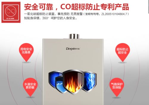 2019年鼎新推出“全新一代燃气热水器”,颠覆了传统燃气热水器产品:将航天生命废气检测技术应用于燃气热水器,既能防一氧化碳中毒又能防天然气泄漏;水气双调恒温技术、零冷水技术,解决了水温忽冷忽热难题,实现多点用水0感知、二次开水无冷烫水等功能。