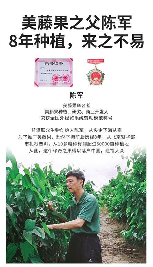 美藤果油由普洱联众生物资源开发有限公司出品,联众生物于2009年云南澜沧江-湄公河引进种植美藤果(南美油藤),又于2013年将美藤果油申报获批国家新资源食品。同年获得由科技部、国家科学技术奖励工作办公室颁发的中国“民营科技年度贡献奖”。《美藤果种植基地建设和产业文化发展》被科技部批准为国家级星火计划。
