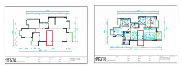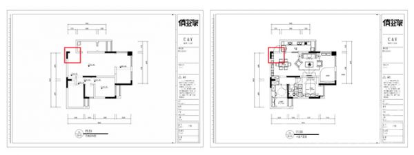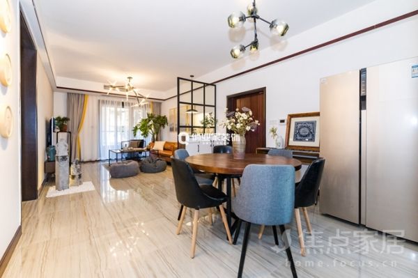 入户即见客厅,无玄关功能,客厅入户对流,业主十分看重居家私密。解决方案:新建隔断,二进空间划分出客厅与玄关餐厅两个空间,空间有联系,又彼此独立。