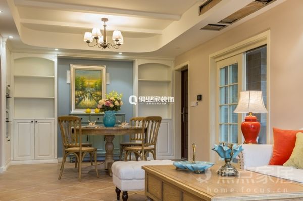 新房空间的优化和储物功能的提升是很考验设计师专业素养的,以墙面内嵌的柜体实现储物功能,同时,也保证了陈列美观的效果。