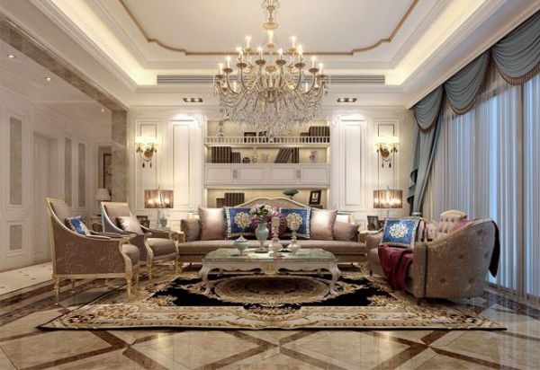 欧式宫廷给人一种奢华的气质,欧式风格主要用蕾丝、工艺繁杂的水晶灯。构成浓郁欧式风格的华丽卧室。窗帘一般以水波形帘头复式设计,面料闪着光泽感的清雅淡金色、白色。