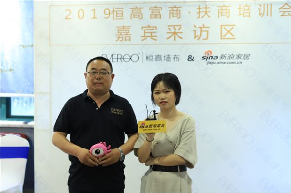 【新浪记者】:各位新浪网友大家好,我是新浪家居墙布频道的记者濮思怡,现在我们位于2019恒高“富商·扶商”大会的现场,非常荣幸能够邀请到恒高优秀经销商禹亚珠接受我们的采访。禹总您好,请您简单介绍一下自己。