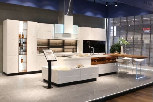 文兴琴:现在比较流行时尚轻奢的感觉。不光光是这一场展会,其他的展会包括国际上的大型展会,我们也都有去参观和学习。整体来说,从米兰展开始流行过来的简约轻奢风,还有开放式的厨房、厨餐厅结合,可以有更多的互动体验,甚至在融合一些智能、微智能,去释放下厨的双手,依赖更多空间打造、包括空间的收纳体系、人体工学考虑的更周全,这些都是近年来这些展会的趋势。