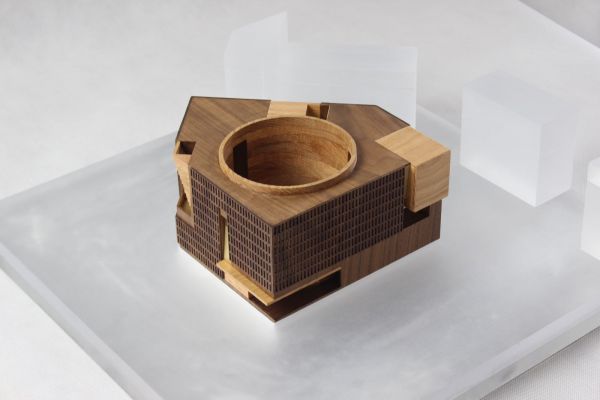 Within the thick mass of the building volume is a series of interlocking spaces that visitors can meander freely within, slowly ascending, enjoying a choreographed journey with directed views both inward and outward. Gallery spaces are about the enjoyment of art. This project is no different in that regard, a spiraling path leads you through all the spaces, urging you onwards by the desire to see more. Starting at the bottom with the Café, Multi-purpose Gallery, and an Outdoor Amphitheater, the path guides visitors through five distinct galleries, culminating at the rooftop where you get 360-degree viewing of the activities below.