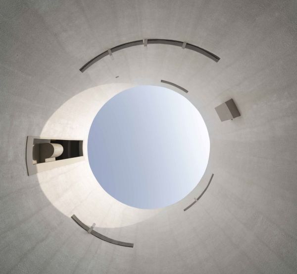 厚重的建筑体量内部串联了一系列空间,人们可以在这里自由漫步,缓步向上,享受一段内外视野精心编排的旅程。艺术空间的主要功能就是陈列和体验艺术,阿那亚艺术中心也不例外,螺旋上升的流线将人们引导至每一个画廊空间,在展陈艺术品的过程中不断激发人们的观赏欲。倒锥形空间底部设置了一间咖啡馆、一间多功能画廊和一个圆形的室外剧场,从这里开始,环形连廊引领人们穿过五个独特的画廊空间,最终到达建筑顶部,在这里俯瞰四周的风景和建筑内部的活动。