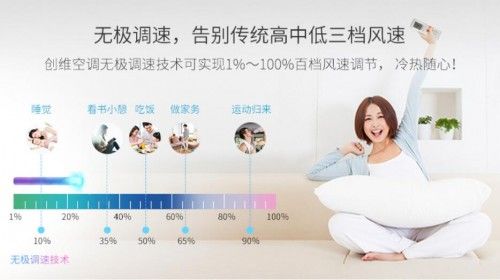 风速优秀——人性化。无极调速这个功能是创维空调最让我感到惊喜的地方。以往绝大部分品牌的空调一般只有高、中、低三个档选择,而创维空调的无极调速实现1%~100%风速调节,可以根据个人的适应度随意调节速度,冷了就调高,,热了就调低,如此人性化的设置,让小编和家人总能找到最适合的风速,感受到最舒适的风。