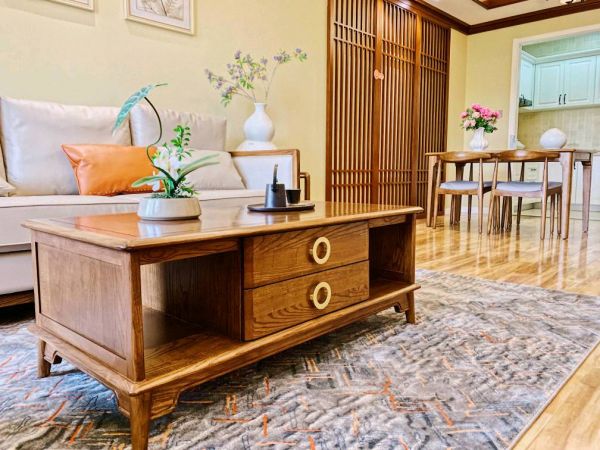 这款“闲庭落英”入眼全是“木”,标配全屋北美白橡木家具整装产品,进口实木家具臻品,具有优雅沉静的国风特点。这款整体家具以圆角设计为主,线条简练,朴实而又有内涵,不仅美观还大大提高了安全性和耐磨程度。而且,整屋北美白橡木家具不仅兼具了美观与实用性,茶几、屉柜、床箱还均可收纳储物。