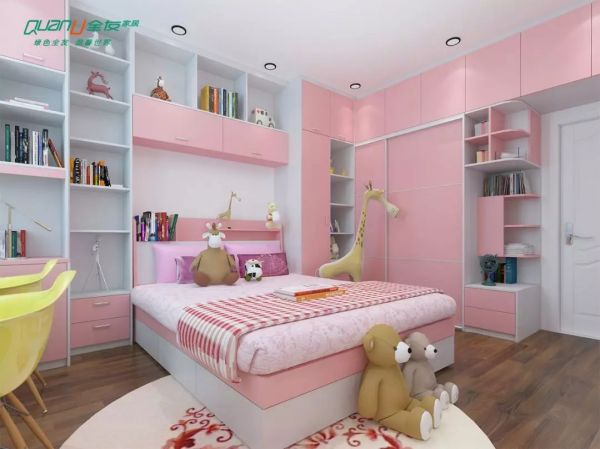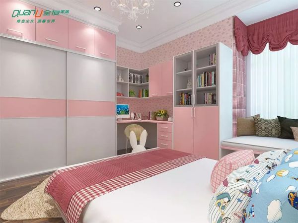 全友全屋定制巧妙的将粉色与红色、白色相结合,在同一空间中给小公主创造一个丰富多彩的世界,使房间充满活力。