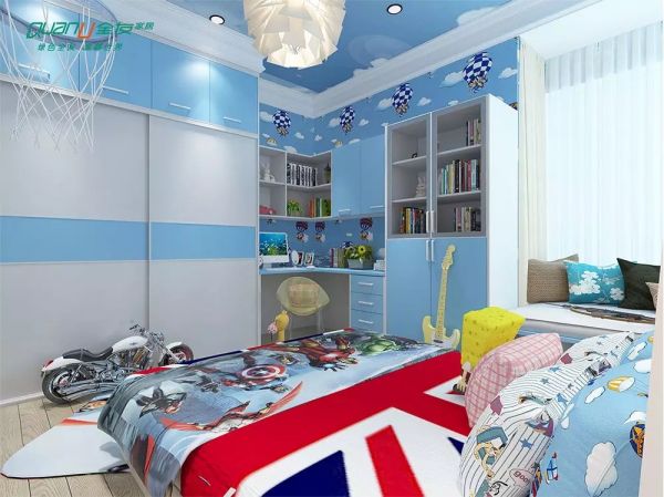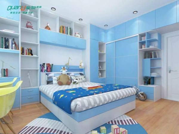 全友全屋定制用大面积蓝色加以白色点缀,营造清爽活力的感觉,适合阳光朝气的小男孩。