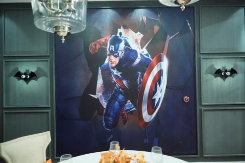 邵沛从孩子的心理需求思考对餐厅的需求,巧妙地运用了杨阳洋对超级英雄的喜爱,在整个空间融入了许多超级英雄的软装陈设。