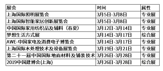 强者相逢必有恶战。狂欢也好,热闹也罢。仅2019年3月,单家居行业不完全统计,上海就举办了专业展6个,综合展2个,还不包括设计类展会和家博会之类的消费建材促销展。