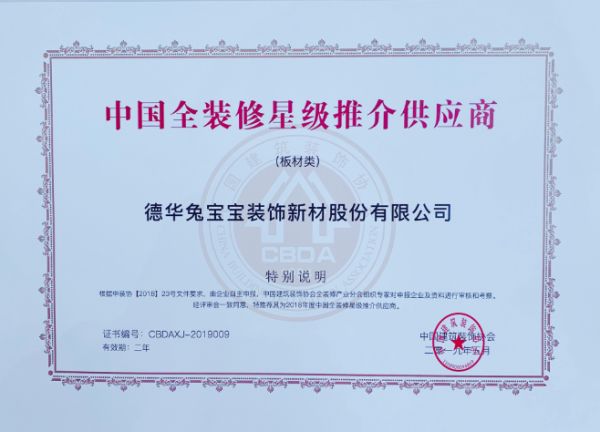 “全装修星级推介供应商”兔宝宝:正面迎接新时代