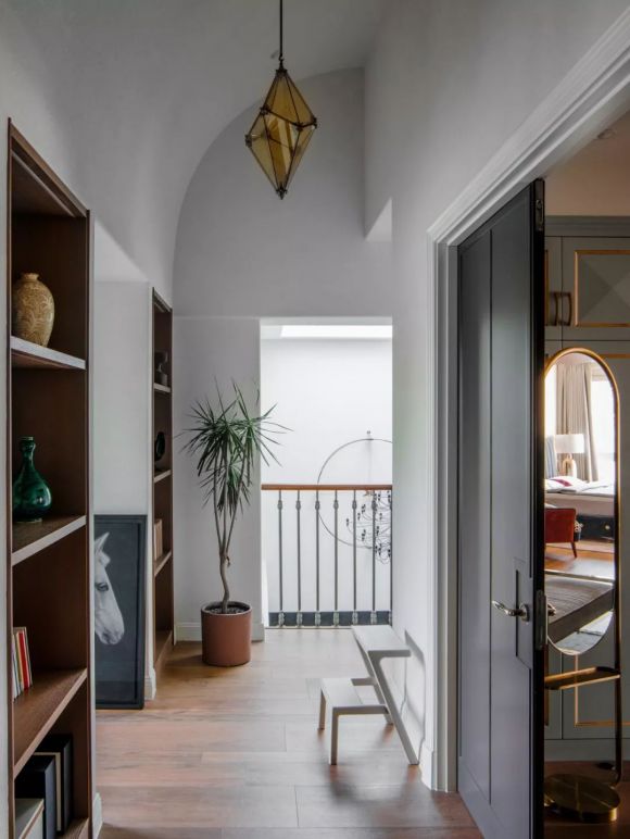 门厅的地面铺贴了手工瓷砖,搭配胜利女神雕像,充满古希腊浪漫爵士风。