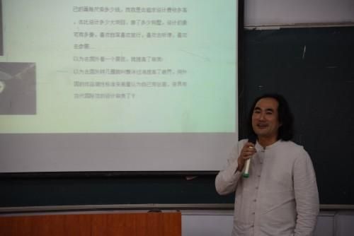 在现场他首先向各位同学发问道“设计的本质是什么、设计的逻辑是什么、设计的作为是什么、赋予设计的内涵又是什么”。这一连串的问题立刻让在场的学生陷入思考。随后邓老师以自身的设计历程告诉我们:曾经的我们,想要大千世界所有的精彩,到最后才会发现设计需要放下浮华,回归初心,需要以人为本,尤其注重产品使用者的体验,这才是赋予设计的意义。此外,邓老师还语重心长地说道:“设计是一门需要费心费神永不能停止学习的功课,你需要从文学中获取事物的洞察力、需要从建筑的角度考虑空间关系、需要有艺术家一样的审美、更需要工匠一般的精雕细琢,所以一个好的设计师是一个永不停止学习并将能此运用到实践中的设计师。”语毕,现场掌声阵阵。