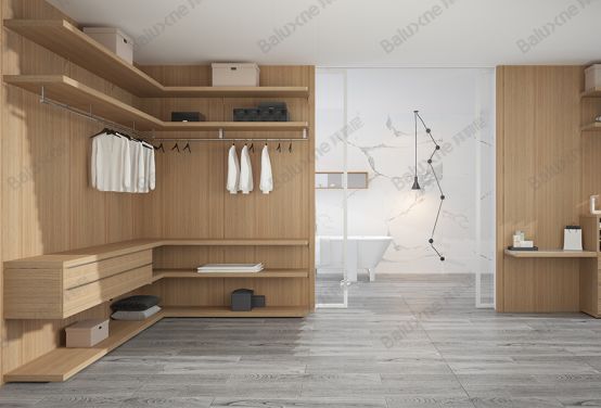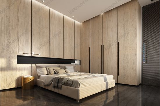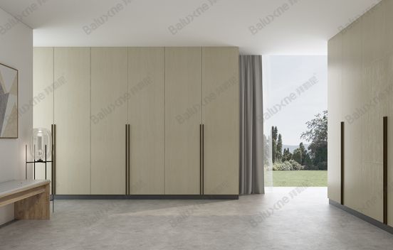 拜勒尼在产品设计上也遵循着这样的方向,饰面选用健康环保的三聚氰胺饰面纸,封边条选用优质ABS材质,造就了极简风尚、纹理清晰、效果逼真、手感舒适的产品特点。产品分为布纹、石纹、木纹、素色4大系列,33种流行花色,可以变幻出千百种造型。每一种花色的出现都经过反复论证,每一种材质的选择都是精挑细选,每一个细节的设计都是匠心独运,只为生产的每一块板都有完美形态。