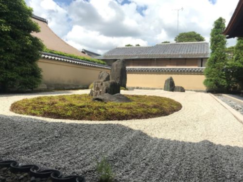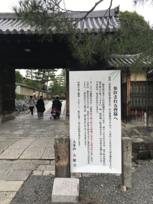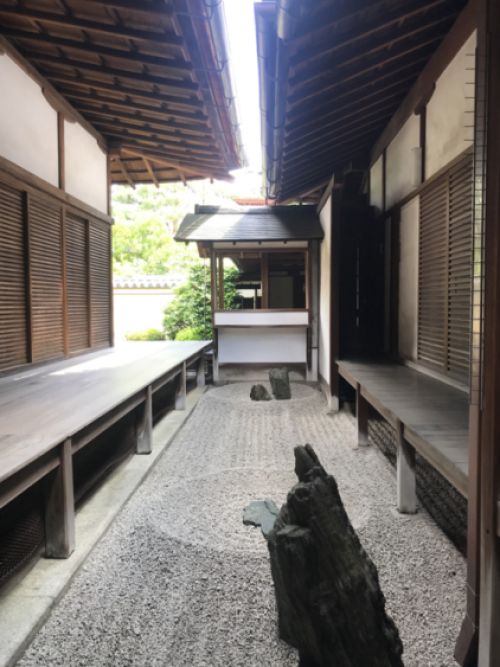 始建于镰仓时代1325年的大德寺,是禅宗文化中心,著名的一休和尚80高龄的时候任寺庙主持,并重建大德寺。建筑采用隋朝建筑设计的风格,庭院采用大量的“枯山水”手段营造禅庭。小巧精致的院落彼此相连,形成巨大的院落群,体现出皇家庙宇的气势磅薄。小中见大的建筑手段与设计哲学很好的匹配了禅宗的“空见性”佛学哲理。