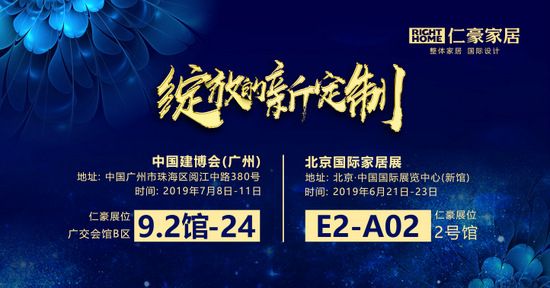 2019.7.8~11广州建博会开幕,仁豪家居领先市场的新定制模式绽放,三大爆品登场!仁豪展位号9.2-24,恭候您的光临。