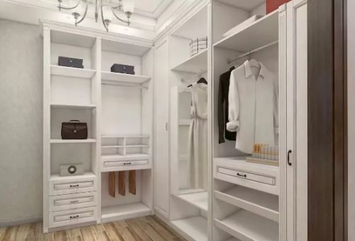 比较适合小户型的衣帽间,大部分都是L型的,占用的空间比U型的小,可利用的空间比一字型的大,就和厨房一样,L型是利用率最高的设计。