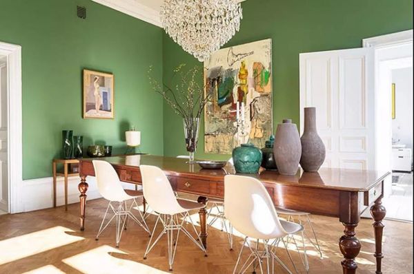 在这个起居室中以绿色作为整体的墙面色,又辅以百合作为点缀,典雅可人,一览无余,给人一种青春绽放的感觉。再搭配精致的蓝色丝绸窗帘,蓬松而又惬意,让人不由自主地沉浸在这份甜美与浪漫中。